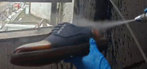 2.深度祛霉:静置3-5分钟,让药剂分解霉菌,再用清水擦净,置于通风处阴干,严禁暴晒防鞋面变形、发黄。
