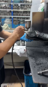 3. 长效防护,抑制再生:清洁烘干后,用喷枪将iHeir-Spray鞋子防霉剂均匀喷涂鞋面、内里、鞋带,喷枪距鞋15-20cm,压力控制2.5P-3.0P,雾化成膜,形成长效抑菌层,耐摩擦不影响鞋材手感,有效抑制霉菌再生。